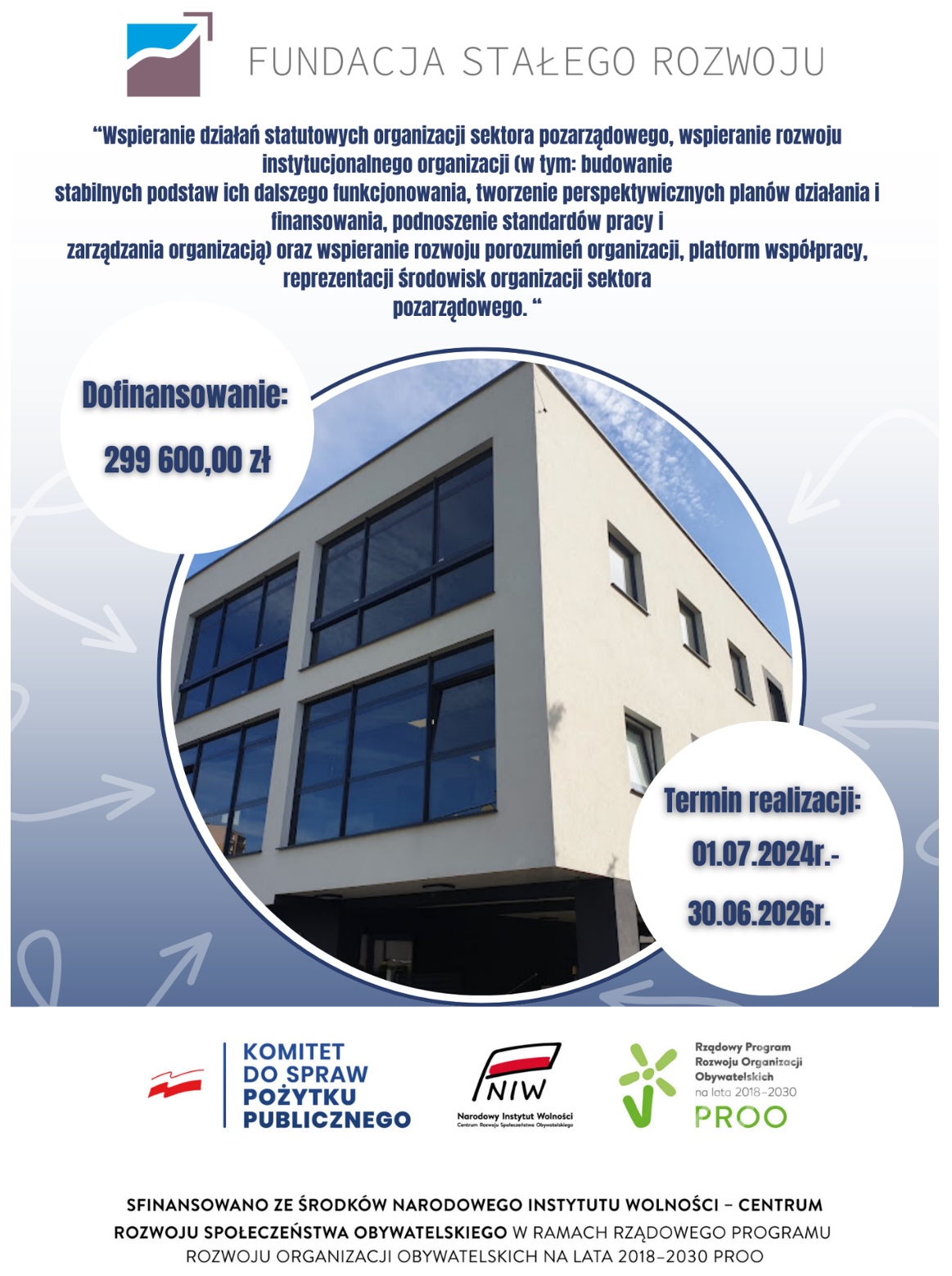 Tytuł: „Wzmocnienie działań statutowych i fundamentów do dalszego funkcjonowania Fundacji Stałego Rozwoju w zakresie reintegracji społecznej i przeciwdziałania bezrobociu”