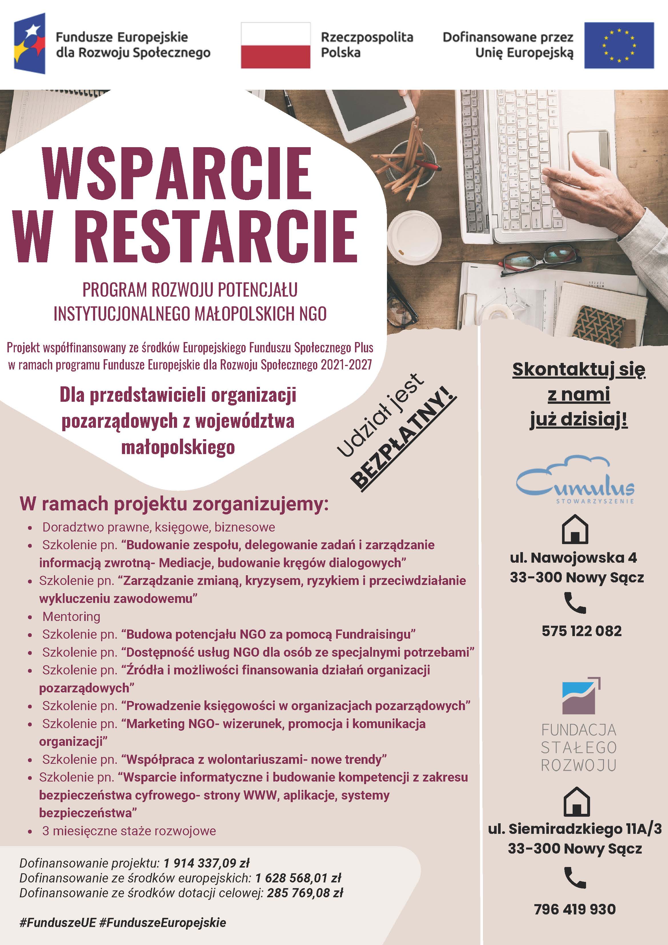 WSPARCIE W RESTARCIE PROGRAM ROZWOJU POTENCJAŁU INSTYTUCJONALNEGO MAŁOPOLSKICH NGO